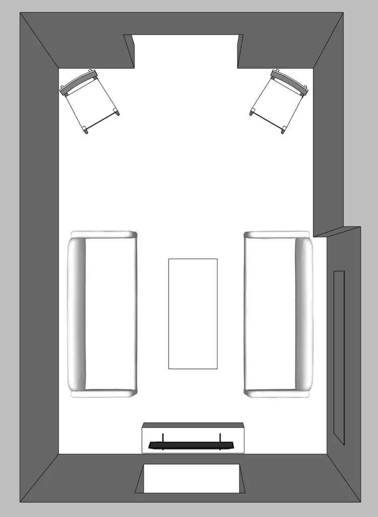 A room that can seat up to 4 people and has a 4K screen. Acoustic treatment and a curtain backdrop ensure the audio is just right and the background appealing. This room can also be rented with podcast recording equipment.